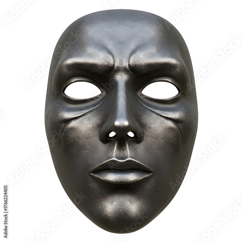 Intense metallic mask with dark emotion expressing anxiety and fear, perfect for Halloween, drama, or conveying inner turmoil in artistic designs
