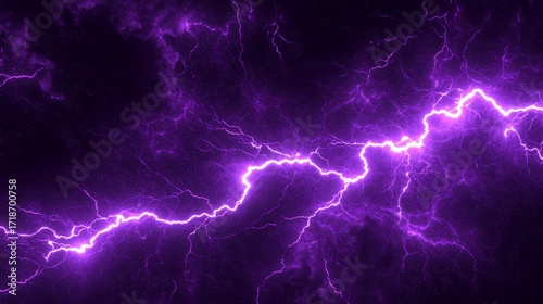 Intense purple lightning strikes across a stormy night sky.