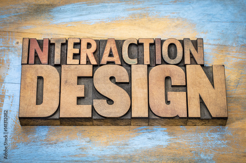 interaction design word abstract in wood type