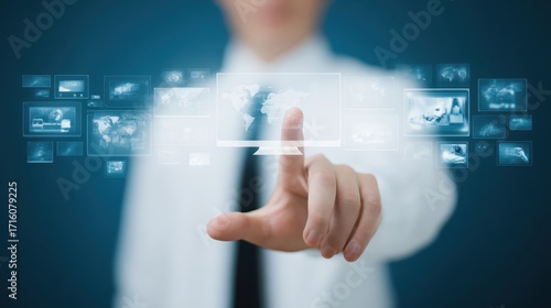 Interactive display exploration, person engaging with touch screen technology human