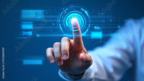 Interactive Futuristic Interface Finger Touching Holographic Display