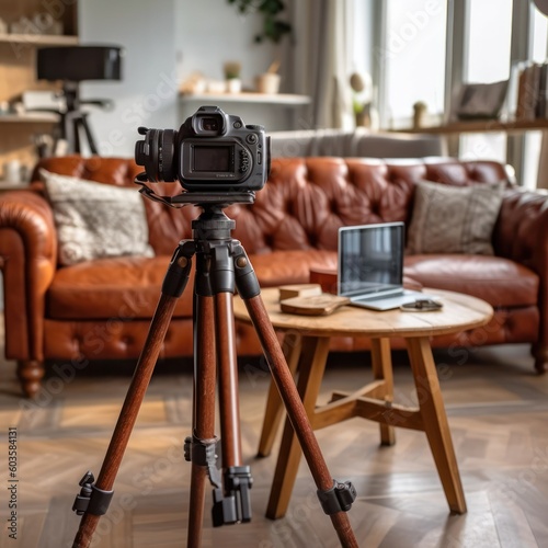 Interior design photography with camera on tripod. 3d render generative ai