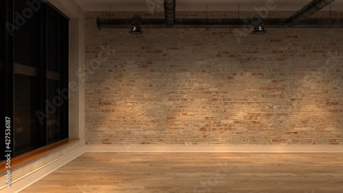 Interior empty room night view 3 D rendering