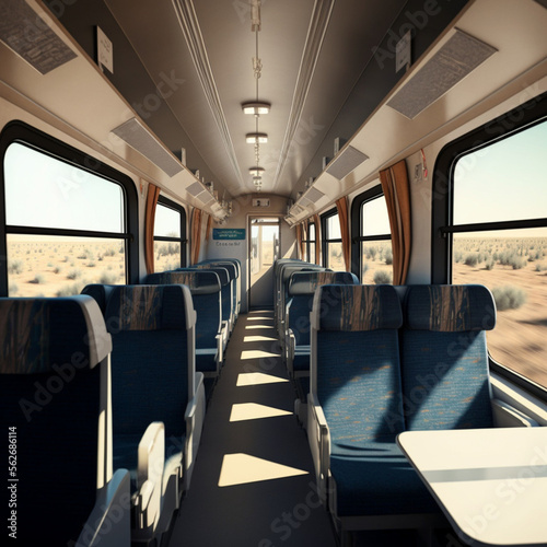 Interior of a train. Generative AI.