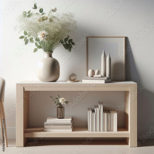 Interior of stylish modern house - console table on white background. AI generated.