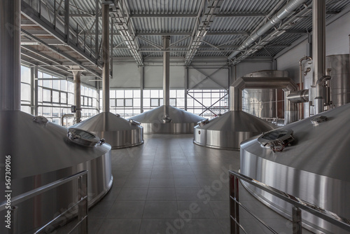 Interior view of plant workshop with fermentation tanks.
