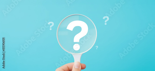 International ask a question day concept, Magnifying glass focused on question mark, Answer, Q&A, Communication and Brainstorming