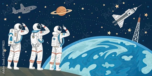 International Day of Human Space Flight April 12 rocket launch with astronauts in outer space