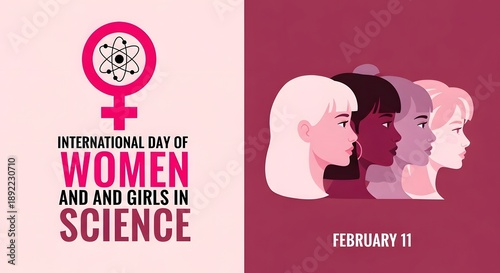 International day of women and girls in science logo with silhouettes of diverse women