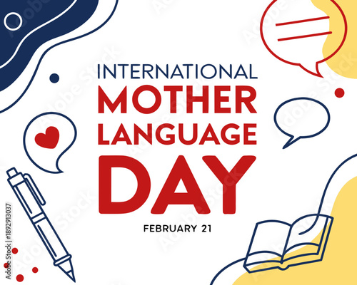 International Mother Language Day February 21 celebration graphic with colorful illustrations