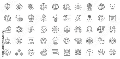 Internet and communication icons set . editable line icons, outline, network symbols