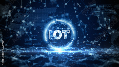 Internet of Things IOT Concept, Technology Network Digital Data and Social Network Worldwide Connection Background. 3D rendering