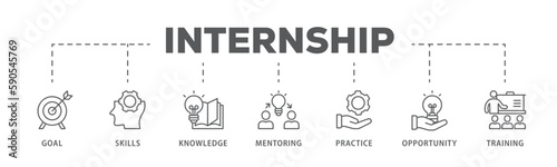 Internship banner web icon vector illustration concept with icon of goal, skills, knowledge, mentoring, practice, opportunity, and training