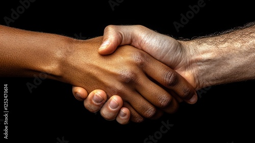 Interracial handshake on black background; agreement, partnership
