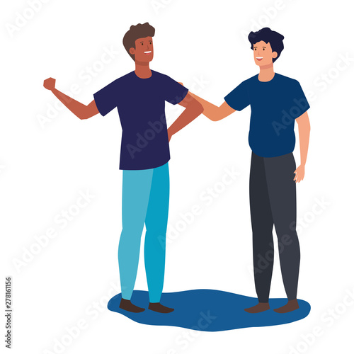 interracial young men friends celebrating characters