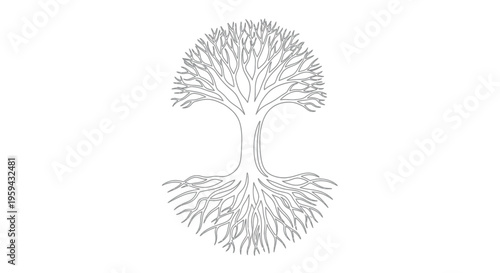 Intricate bare tree branches and root system forming a circular pattern