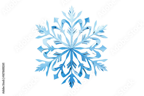 Intricate blue watercolor snowflake isolated on transparent background. Snowflake paper isolated on white background.
