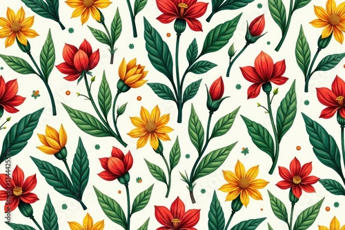 Intricate botanical illustration, repeating pattern, autumn, flora