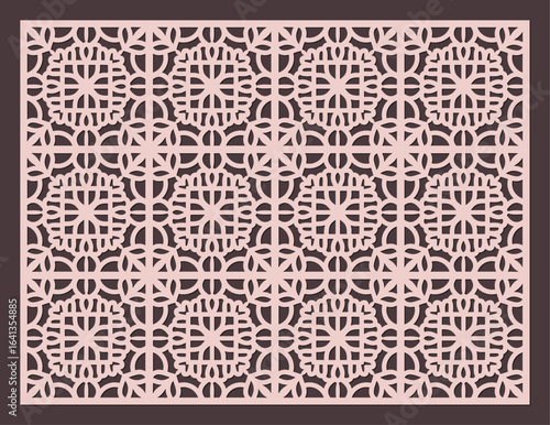 Intricate geometric pattern with circular motifs and floral elements, perfect for laser cutting vector