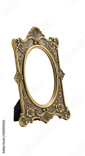 Intricate gilded photo corner with delicate floral engravings, standalone, on a transparent studio background, no shadows, bright studio lighting, concept for luxury product display