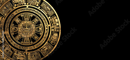 Intricate Gold Aztec Calendar Design