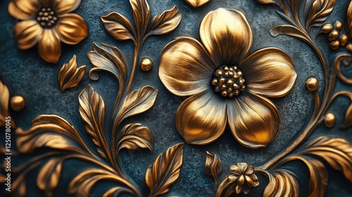 Intricate golden floral relief design showcases craftsmanship and artistic detail
