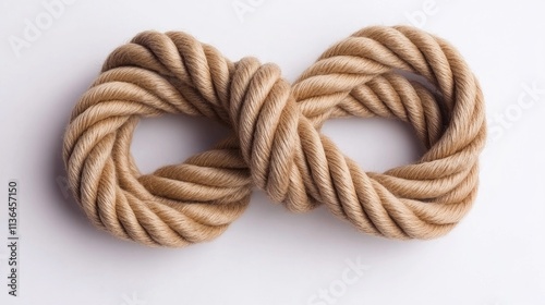 Intricate knot binding two brown ropes together against a pristine white background in a visually striking composition