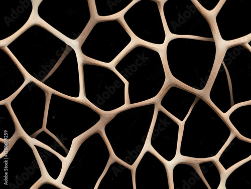 Intricate Light Wood Lattice Structure on Black Background Creates a Visually Striking Pattern