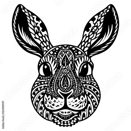Intricate Line Art of Rabbit Face with Detailed Floral and Geometric Patterns