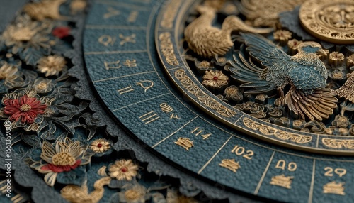 Intricate Ornate Circular Pattern with Gold and Blue Accents
