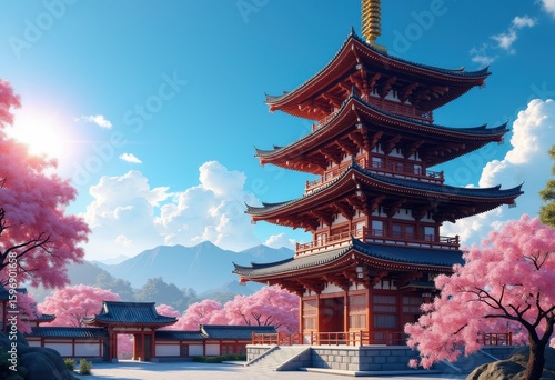 intricate pagoda structure vibrant blue sky serene architecture full cultural heritage ancient brilliance, culture, design, landmark, traditional, ornate