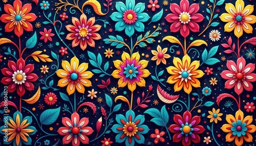 Intricate paisley floral pattern in vibrant hues, background, paisley, decoration