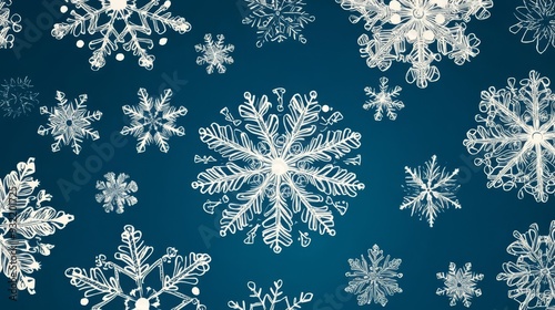Intricate snowflake pattern with delicate details, flat , minimalist style, white on blue, clean lines