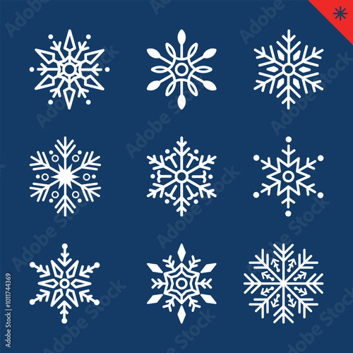 Intricate Snowflake Vector Collection of Detailed Winter Icons for Holiday and Seasonal Decorations