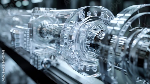 Intricate Transparent Mechanical Gears in Futuristic Setting