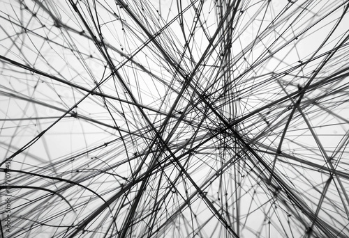 Intricate web of black lines creates an abstract pattern against a light background, showcasing dynamic movement and complexity in design