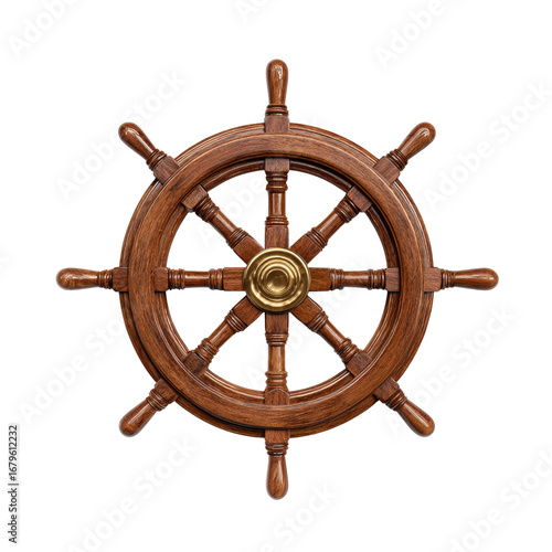 Intricate wood ship wheel object radiating nautical heritage and maritime tradition with a golden