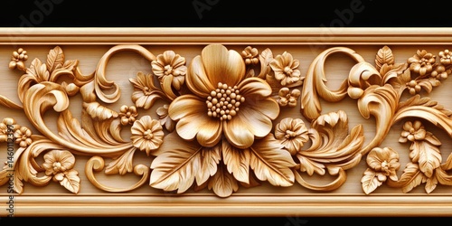 Intricate Wooden Carving: A Golden Floral Design Masterpiece