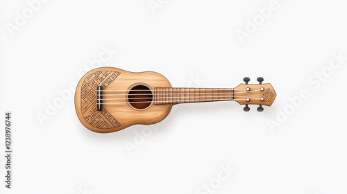 Intricate Wooden Ukulele with Beautiful Pattern and Natural Finish on White Background