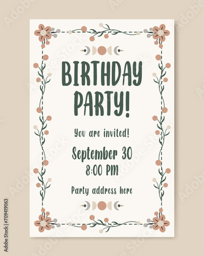 Invitation template with floral design elements. Vector illustration, hand drawing