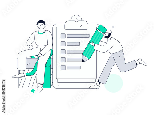 Invite friends to conduct questionnaire flat vector concept operation hand drawn illustration