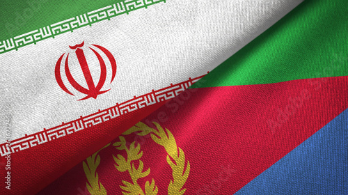 Iran and Eritrea two flags textile cloth, fabric texture