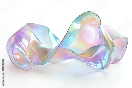 Iridescent glass sculpture with flowing curves and pastel colors