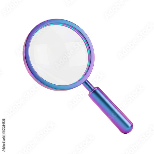 Iridescent Magnifying Glass Casting Reflections on Transparent Isolated Background