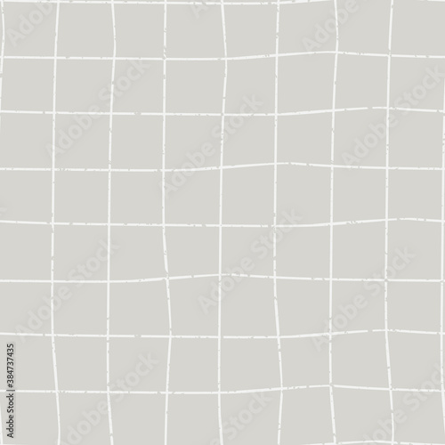 Irregular grid line vector seamless pattern background. Notebook graph paper style hand drawn linear criss cross design. Beige brown backdrop. Abstract geometric mesh weave effect. All over print