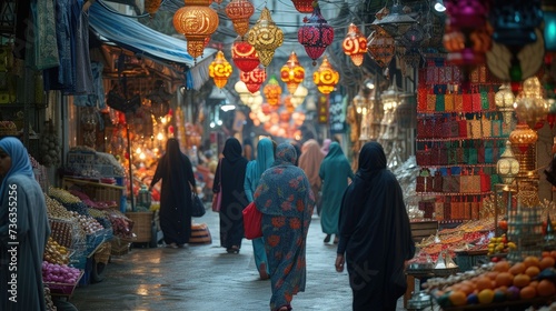 Islam people in ramadhan with a lantern on the mosque, food, happpy vibes, islamic and floating lantern background