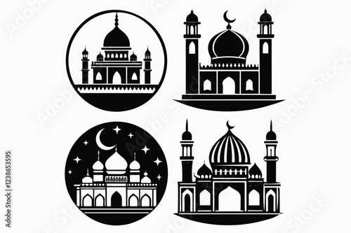 Islamic architecture, mosque silhouettes, domes and minarets.
