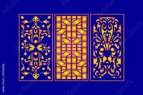 Islamic Decorative Laser Cut Panels Template with Abstract Geometric Texture And Gold Floral Laser