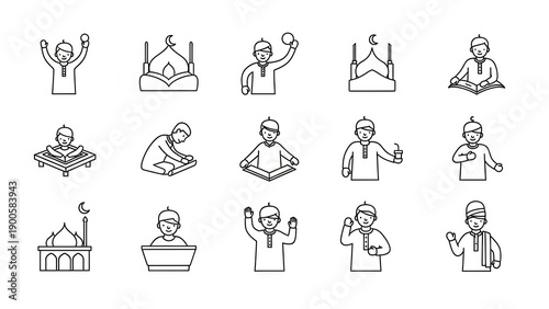 Islamic Icons: Muslim Men Praying, Reading Quran, and Celebrating