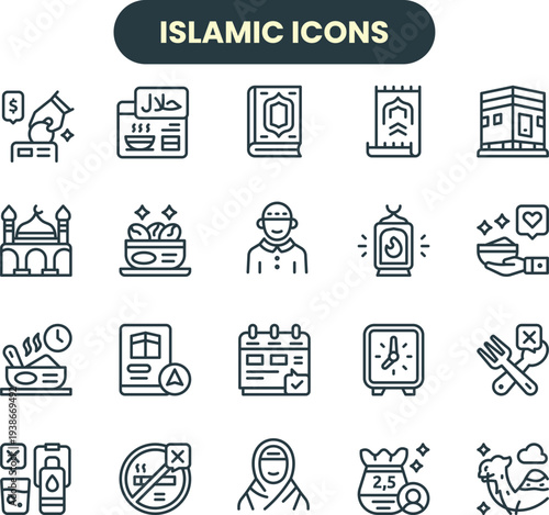 Islamic Icons Set – Religious and Cultural Symbols Vector Collection